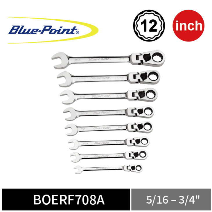 • 8 件式:5/16 – 3/4" 扳手組,附工具收納盤 • 活動棘輪頭可180° 轉動,空間受限處也可輕鬆應對 • 採用可逆雙爪棘輪設計,操作順暢,強度表現極致可靠 • 4.5° (較小扳手為 5°) 棘輪齒角設計,操作時只需輕微擺動即可咬合下一齒 • 堅固、耐用的鍍鉻表面