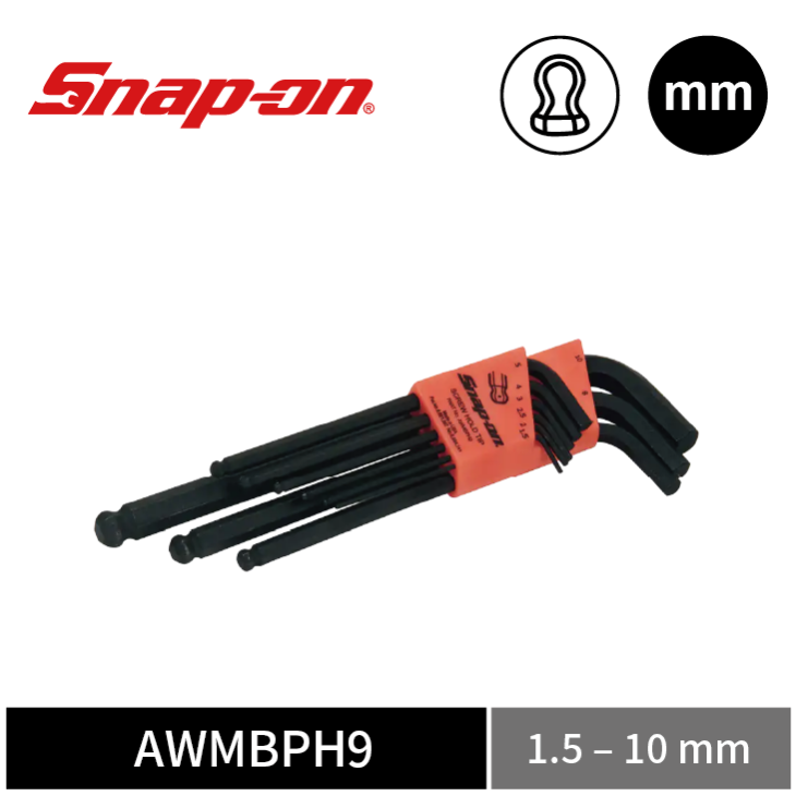 Snap-on 9件式 公制 L型 球頭六角扳手組 (1.5–10mm)