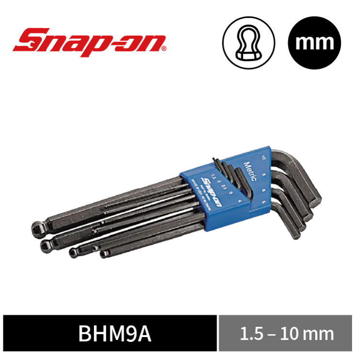 Snap-on 9件式 公制 L型 雙球頭六角扳手組 (1.5–10mm)