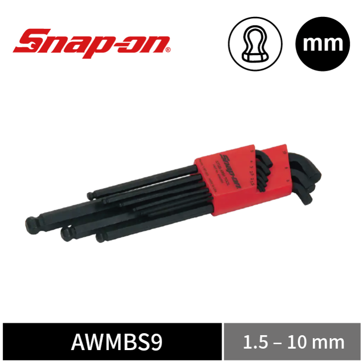 Snap-on 9件式 公制 極短 L型 球頭六角扳手組 (1.5–10 mm)