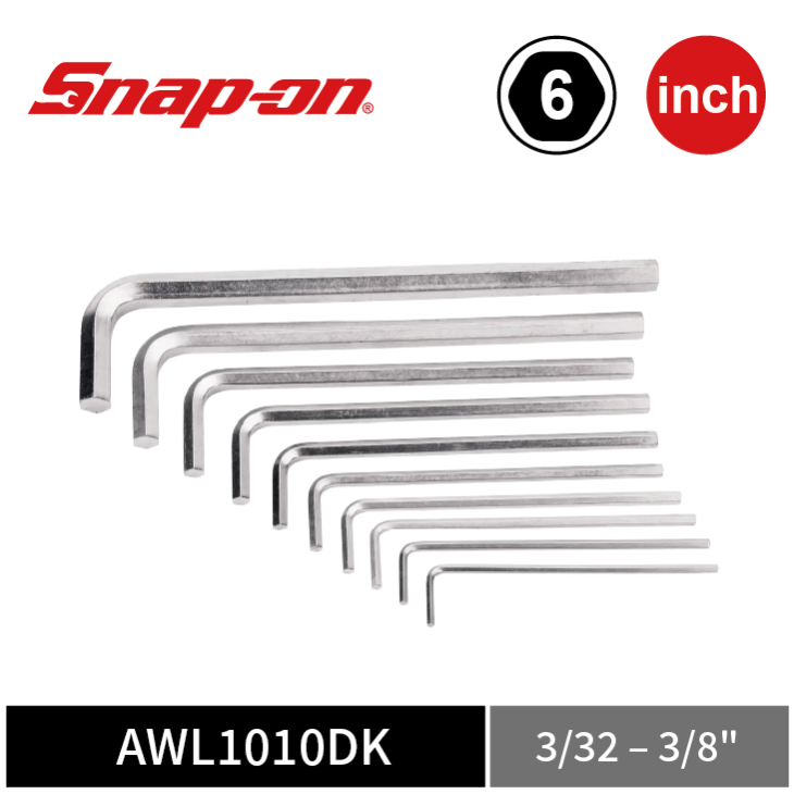 Snap-on 10件式 英制 加長 L型 六角扳手組 (3/32–3/8")
