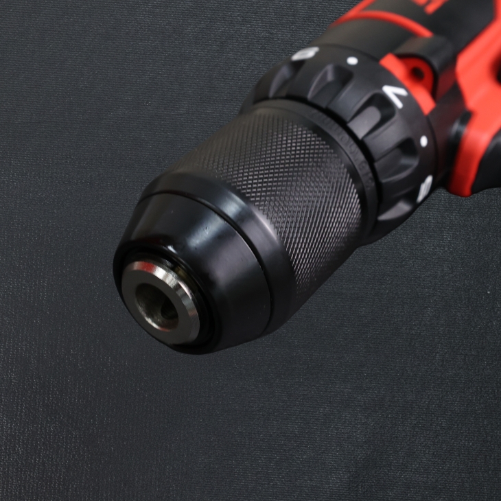 • 3/8" 單套筒式鋼製夾頭適用多種規格的鑽頭/起子頭,可免工具即可快速更換