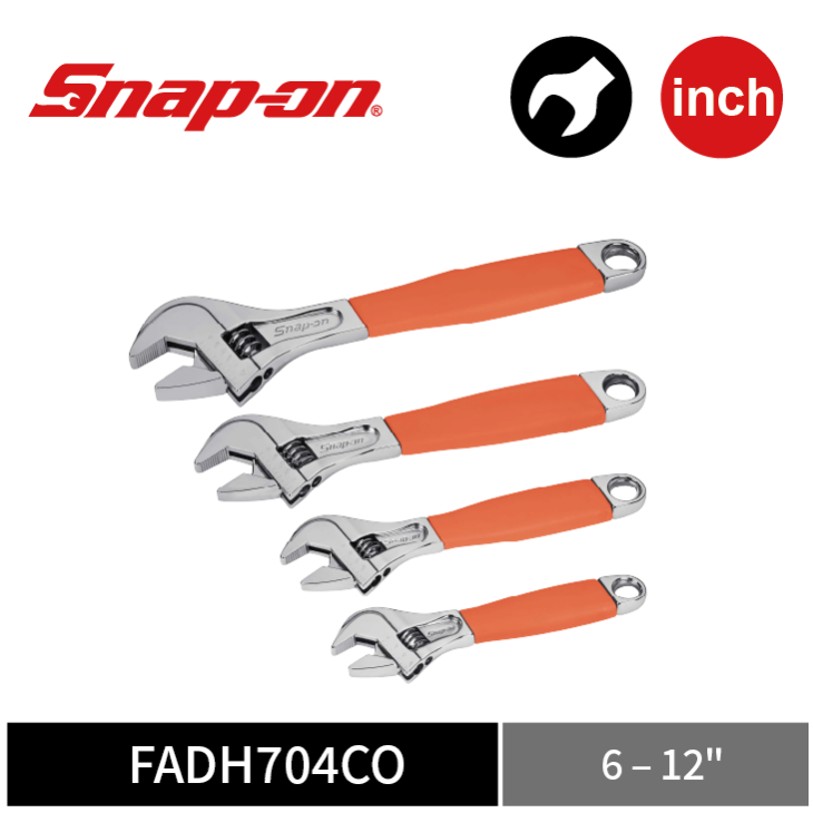 Snap-on 4件式 英制 Flank Drive® Plus 活動扳手組 (6–12") (橘)