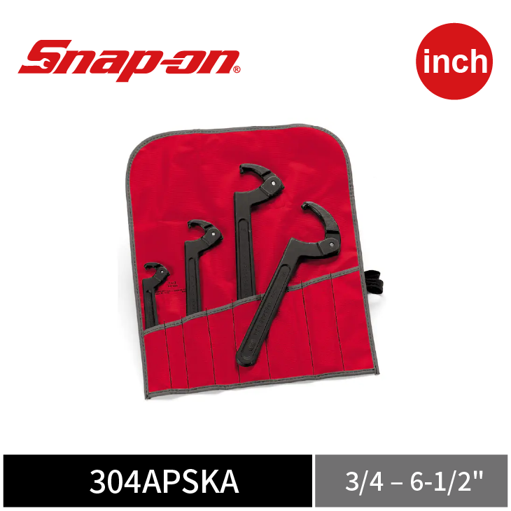 • 4 件式:3/4 – 2"、1-1/4 – 3"、2 – 4-3/4" 和 4-1/2 – 6-1/2" 扳手組,附工具收納袋 • 專用於對應帶有孔洞的螺母和軸承、環型零件及其他機械部件 • 作業時請務必確保夾鉤有正確對位