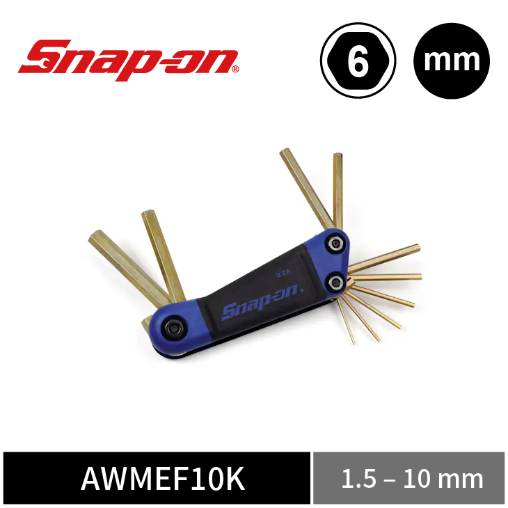 Snap-on 6件式 公制 折疊式六角扳手組 (3–6、8、10 mm)