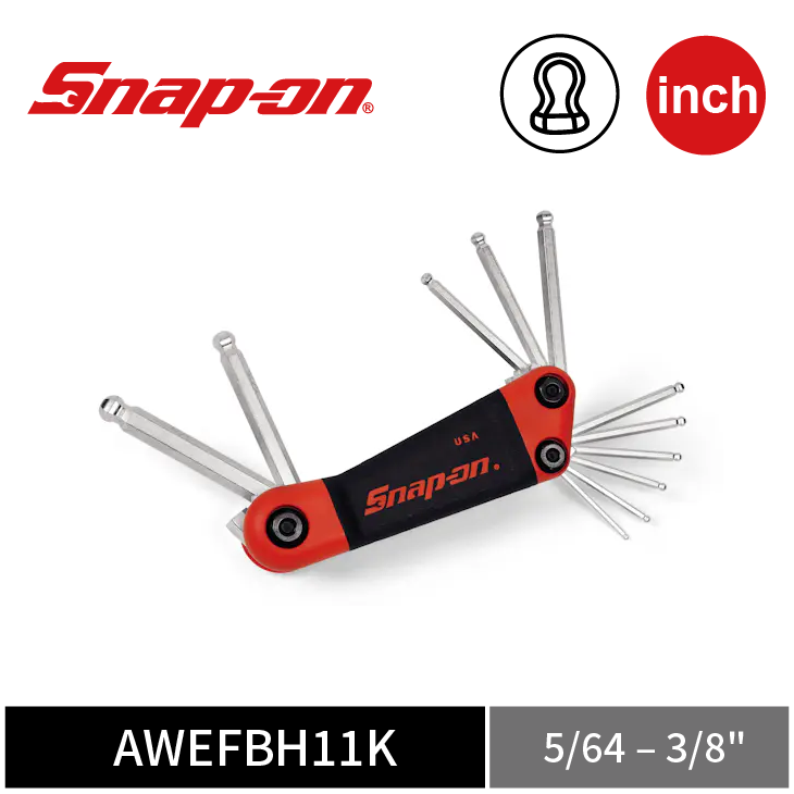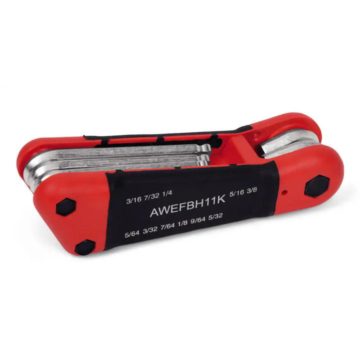 • 11 件折疊式:5/64"、3/32"、7/64"、1/8"、9/64"、5/32"、3/16"、7/32"、1/4"、5/16"、3/8" 扳手組 • 球型端設計可在不需拔出並重新定位扳手的情況下,連續旋轉螺栓 • 亮面塗層相較於傳統鍍層能提供更優異的防蝕保護,更可提高工具辨識度