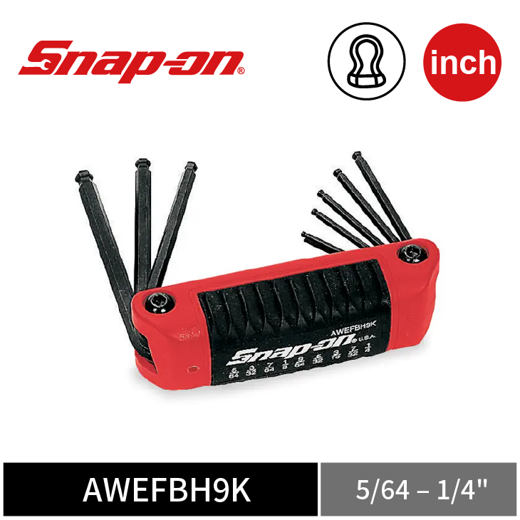 Snap-on 9件式 英制 折疊式球頭六角扳手組 (5/64–1/4")