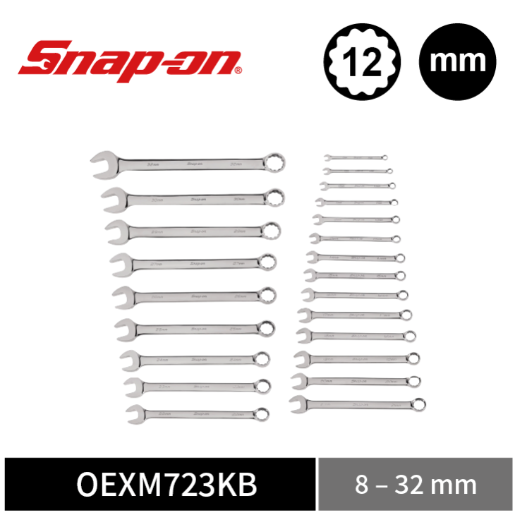 Snap-on 7件式 12角 公制 Flank Drive® 梅開扳手組 (10–15, 17 mm)