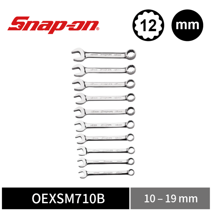 Snap-on 19件式 12角 公制 Flank Drive® 短版梅開扳手組 (6–24 mm)