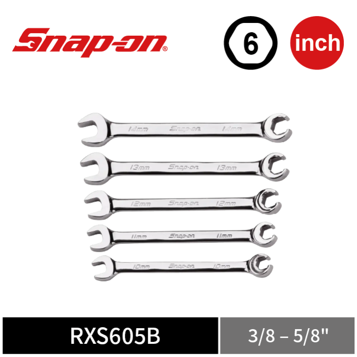 Snap-on 5件式 6角 公制 開口/油管扳手組 (10–14 mm)
