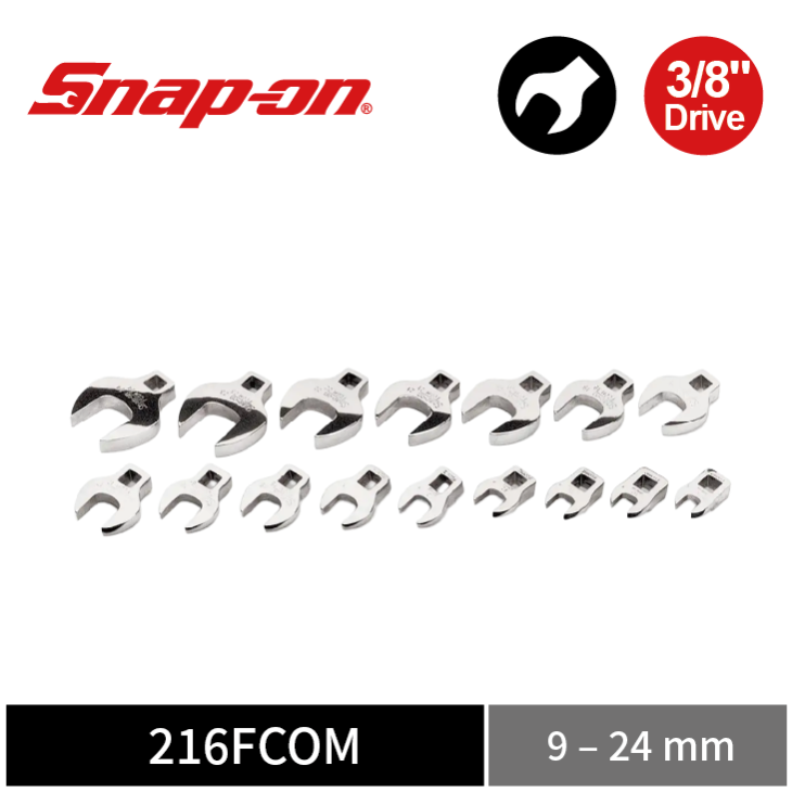 • 16 件式:3/8" Drive 9 – 24 mm 鴨掌扳手組 (爪型扳手組) • 以高強度合金鋼製成,經精密鍛造與熱處理,確保優異的強度與耐用性 • 連續弧形設計,將受力平均分佈於整個開口半徑,提升強度與穩定性
