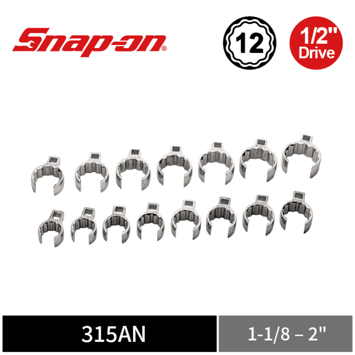 • 15 件式:1/2" Drive 1-1/8 – 2" 鴨掌扳手組 (爪型扳手組),附工具收納盤