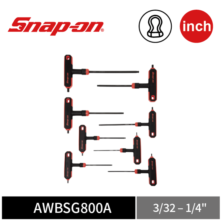 Snap-on 8件式 公制 T型/L型 球頭六角扳手組 (2–10 mm)