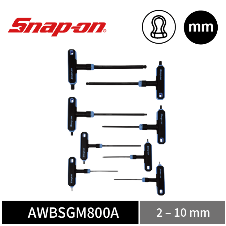 Snap-on 8件式 英制 T型/L型 球頭六角扳手組 (3/32–1/4")