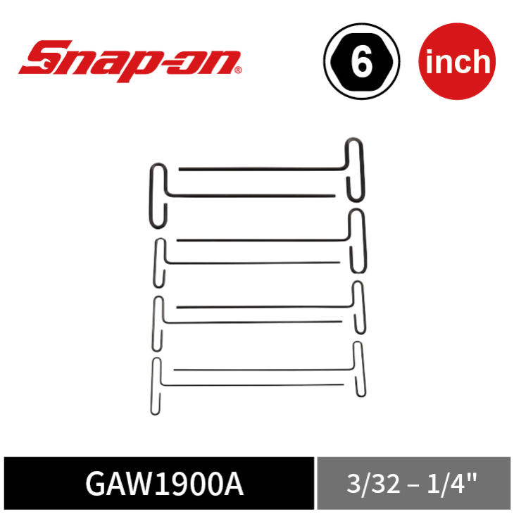 Snap-on 8件式 英制 T型 標準手柄六角扳手組 (3/32–1/4")