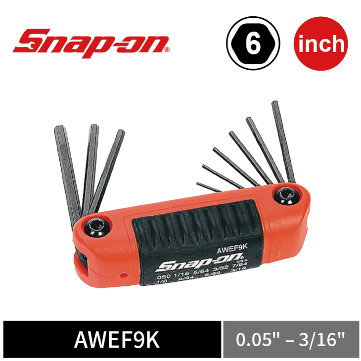 9 件折疊式:.050"、1/16"、5/64"、3/32"、7/64"、1/8"、9/64"、5/32"、3/16" 扳手組