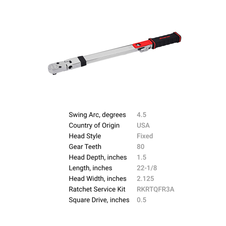 • 扭力範圍:70–350 Nm,順時針方向精度 ±4%,範圍適用於滿刻度的 20–100%,僅單向使用