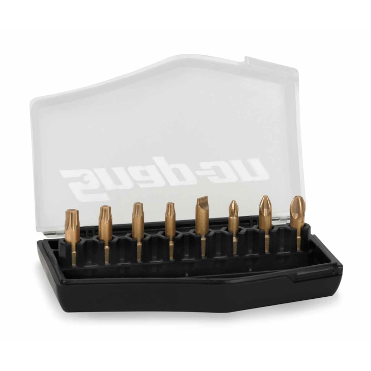 • 8件式 (1/4" 六角柄):一字頭 (1 x 5.5 mm)、PHILLIPS® 十字頭 (#1, #2, #3)、TORX® 星形頭 (T15, T20, T25, T30)