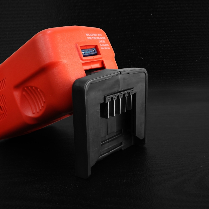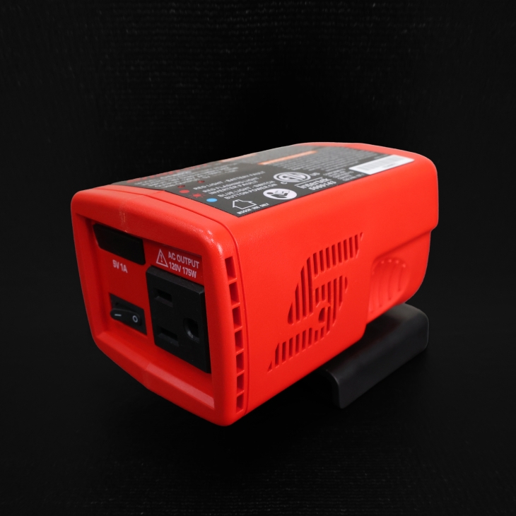 • 175 W 無線電源轉換器,可將 Snap-on 18V 電池轉換為 120V AC 電源,不受場域限制靈活供電 • 提供穩定電力,適用於小型電動工具、充電器等 110 V 電子設備 • 含 5V 1A USB 埠,可同時為行動裝置充電 • 具備過載、短路與電池電壓保護等多重保護機制 • 內置保險絲與散熱風扇,確保長時間使用安全可靠 • 可旋轉頭式設計,在狹窄空間中可多角度調整 • 輕巧便攜,適合車間、戶外作業與行動工作現場使用
