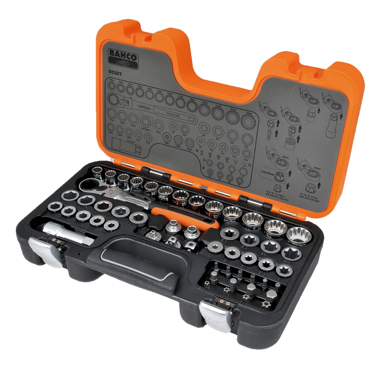 - Nine E-TORX® ring driver adaptors: E8, E10, E11, E12, E14, E16, E18, E20 and E22