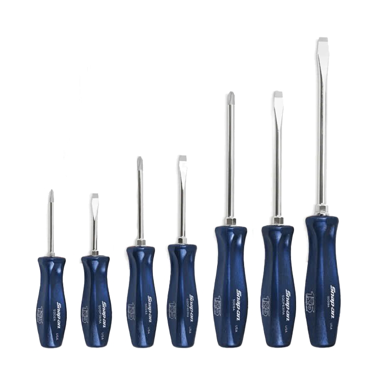 • Snap-on® 限量雷雕紀念 LOGO,手柄上雷射雕刻 105 週年專屬標誌,完美呈現品牌百年精準傳承,別具收藏價值 • 7 件式:含一字起子 (3"、4"、6"、8") 及 PHILLIPS® 十字起子 (#1、#2、#3) • 經典硬柄系列設計,兼具耐用性、舒適握感與易清潔特性 • 拇指止滑弧形設計,提升握持施力的操作穩定度 • 起子頭高精度切削,有效貼合螺絲槽,降低滑牙風險 • 附塑膠收納托盤,方便整齊收納工具 • 適合汽車維修、機械裝配、設備保養與一般日常使用