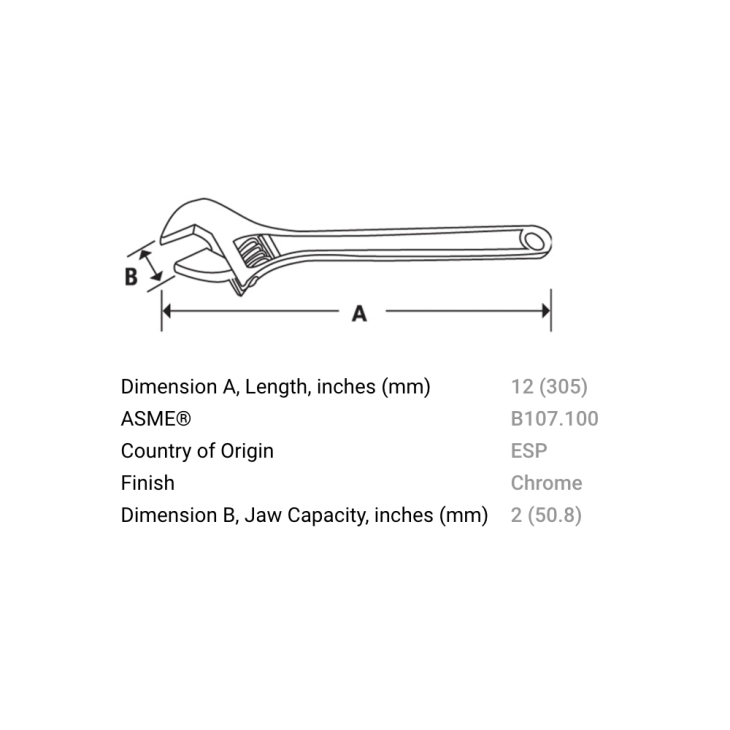 | Dimension B, Jaw Capacity, inches (mm) | 2 (50.8) |