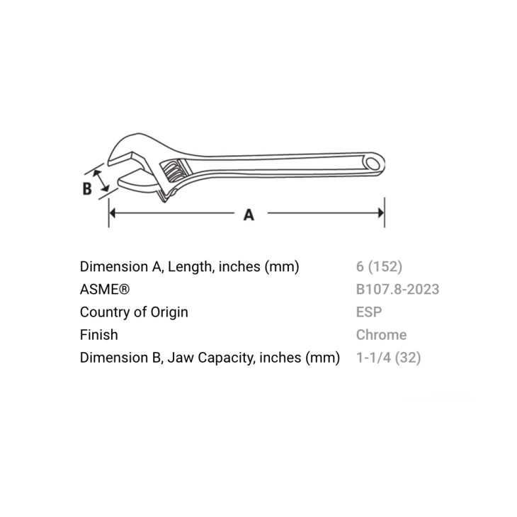 | Dimension B, Jaw Capacity, inches (mm) | 1-1/4 (32) |