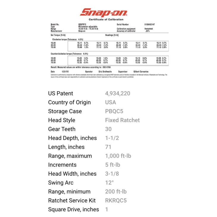 | Increments | 5 ft-lb | |