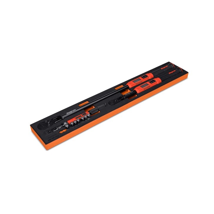 • 3 件式:1/4"、3/8"、1/2" 扭力扳手組,附工具收納 PRO-FI™ 泡綿