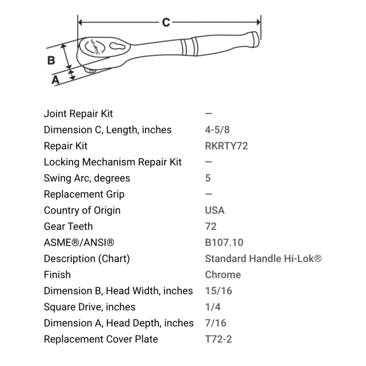 | Square Drive, inches | 1/4 | |