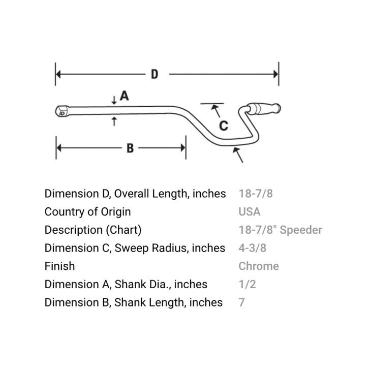 Snap-on 1/2" Drive 18-7/8" 弓形搖桿扳手