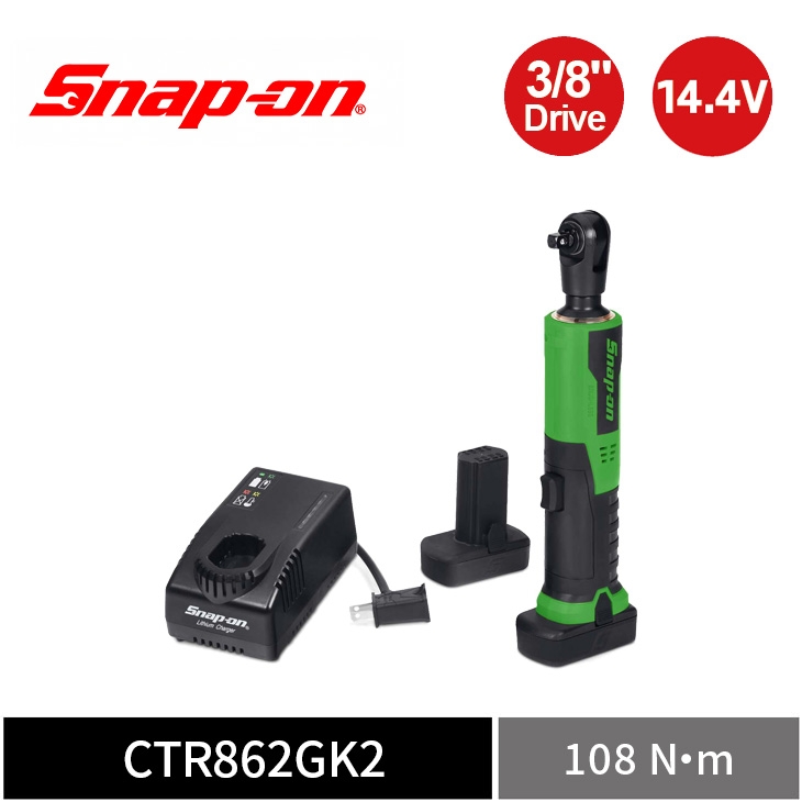 Snap-on 14.4V 3/8" 三分 108Nm 高扭力無刷電動棘輪扳手套組|雙電池+充電座 (紅)