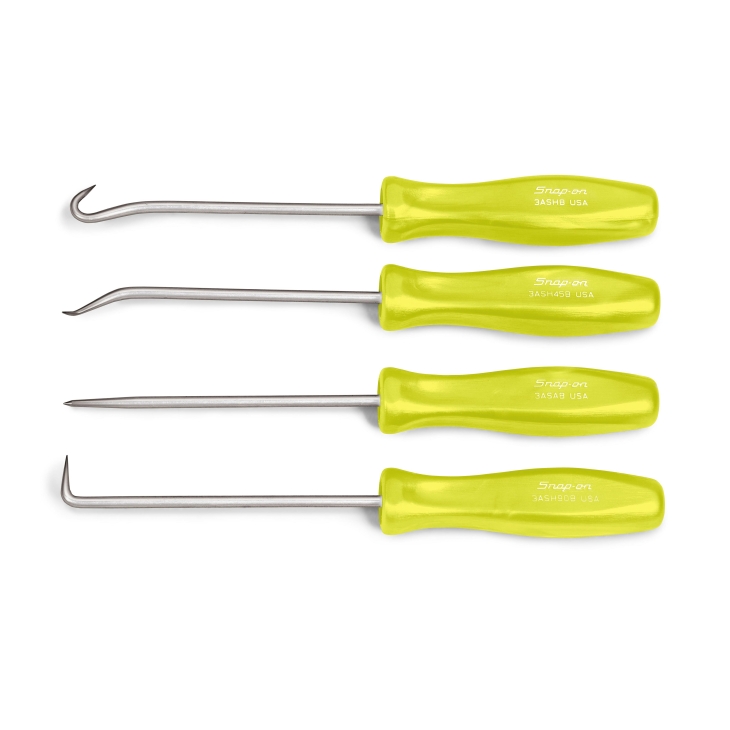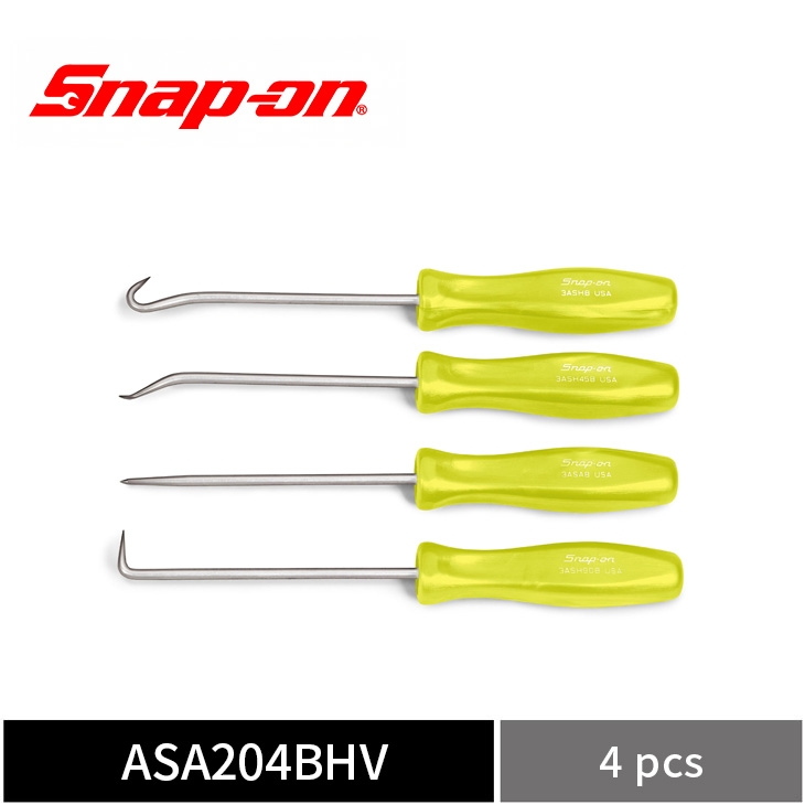Snap-on 4件式 經典醋酸纖維握柄 微型油封拆卸工具組 (螢光黃) 油封鉤