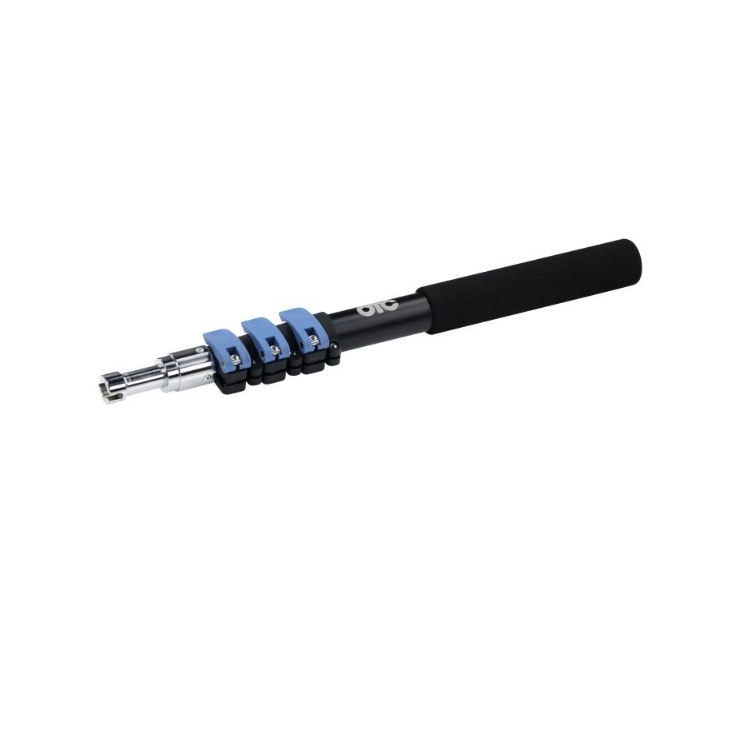 操作把手採用 三段式獨立鎖定設計,長度可由 19" 延伸至 50" ,能輕鬆伸入已舉升的車輛底部進行安全放置與支撐。