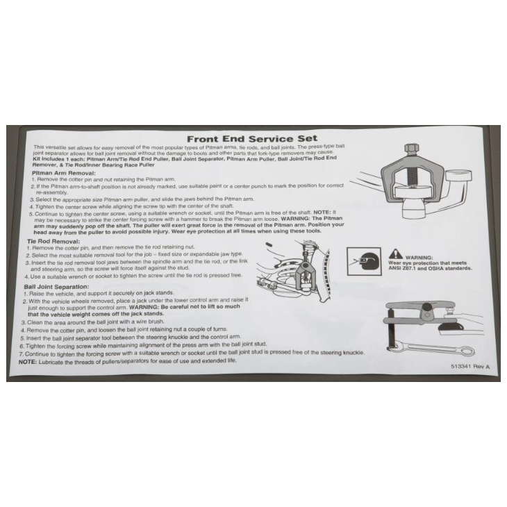 不論是要處理緊固的Pitman臂、球接頭,還是轉向拉桿,這套工具都能提供精準的拆卸力,避免損壞防塵套與周邊零件。