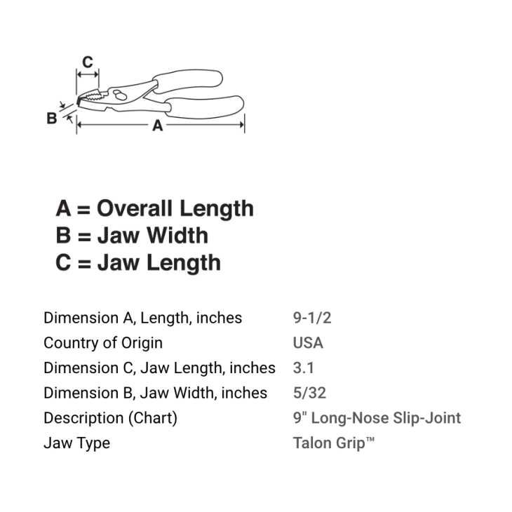 | Description (Chart) | 9" Long-Nose Slip-Joint | |