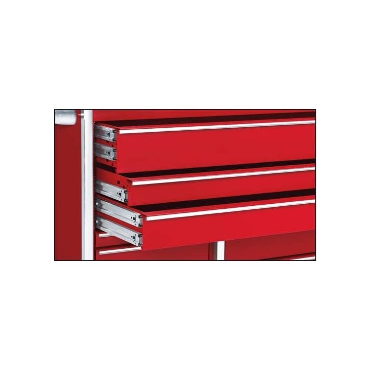 • 100 磅額定承重滾珠滑軌:單個抽屜滑軌可承重約 45.4 公斤,在滿載工具的情況下,抽屜開闔依然滑順