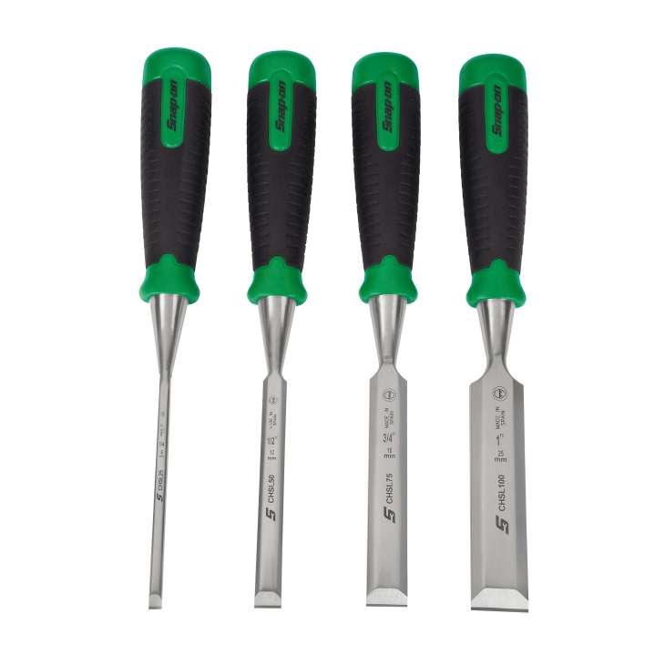 • 4 件式:含 1/4 – 1" 鑿刀組,附複合材質護刃套與尼龍工具收納袋