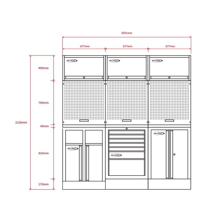 Blue-Point® 78" 工具系統櫃 (資源回收+七抽+雙開門) (紅+黑+紅)