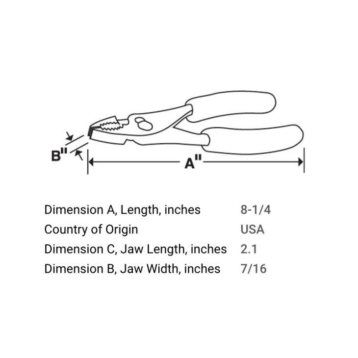 | Dimension C, Jaw Length, inches | 2.1 | |
