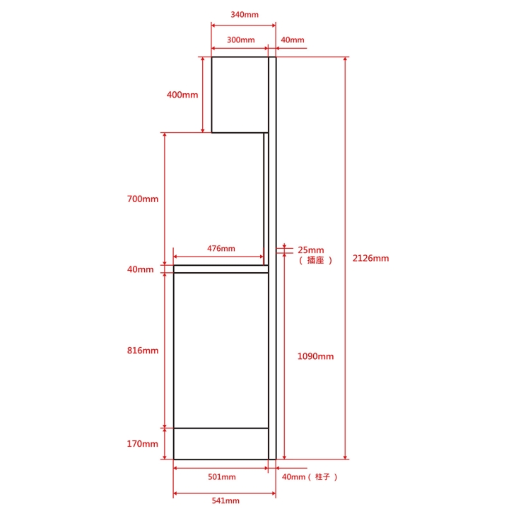 | 三列組合後尺寸: W 2031 x D 541 x H 2126 mm(組合時需加裝後方立柱 D = 501 + 40 mm) | ||