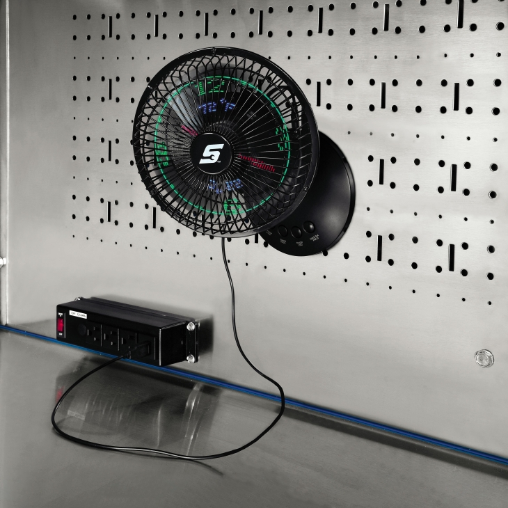 • 配備 10 lb 強力磁性底座,讓風扇吸附在金屬表面,靈活擺放