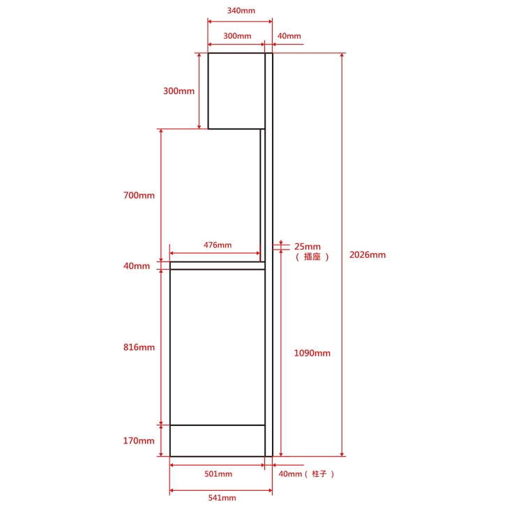 | 26" 電源/風管服務櫃 | ||||