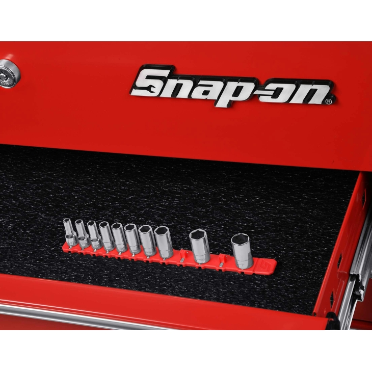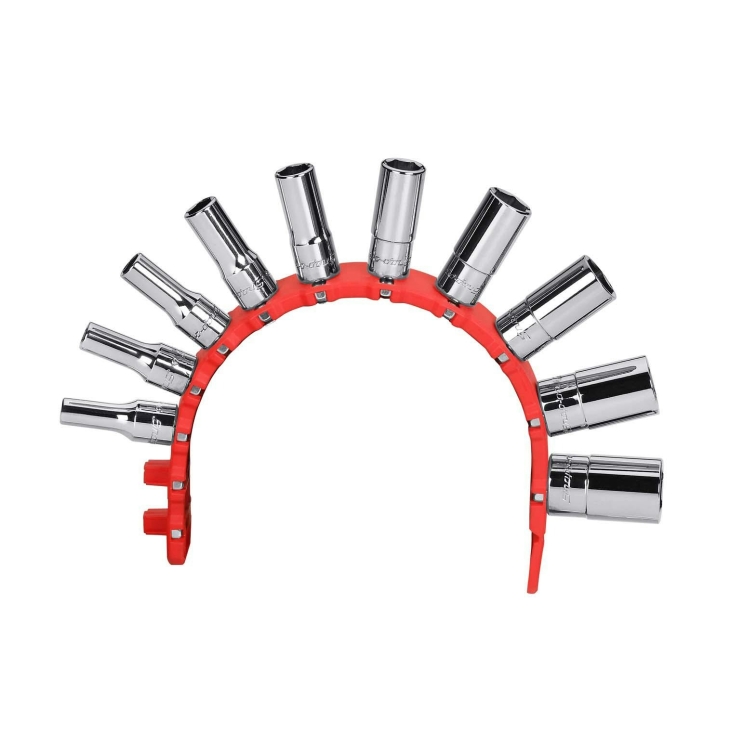 • 可整齊收納各式 2 分套筒且穩固不掉落 • 靈活耐用的矽膠材質收納座,不論在平面或具弧度的表面上都能完美貼合 • 強力磁鐵能牢牢吸住套筒,並讓收納墊穩固吸附在金屬表面上,甚至倒放依舊穩固 • 內建拉環設計,方便從金屬表面輕鬆取下收納座 • 具備高度可攜性,不必擔心套筒散落遺失 • 柔軟的矽膠材質,不會刮傷車漆或任何烤漆表面 • 薄型化設計,能更有效率地利用工具箱抽屜或其他收納空間 • 收納座尺寸:長 9" (約 229 mm),共可收納 12 顆套筒
