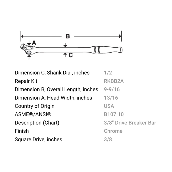| Description (Chart) | 3/8" Drive Breaker Bar | |