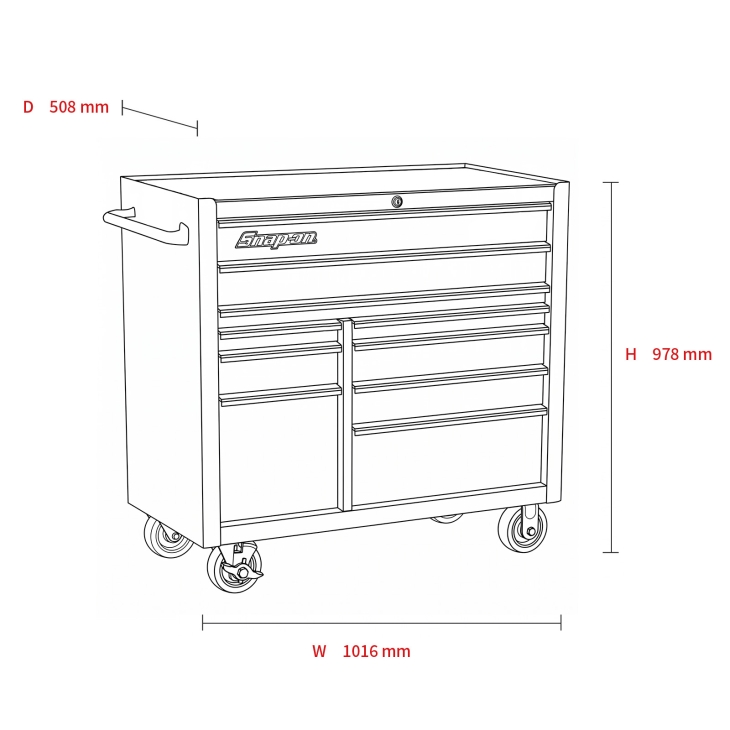 • Snap-on 特殊烤漆技術,採用靜電附著塗裝提供工具車完整防鏽保護效果