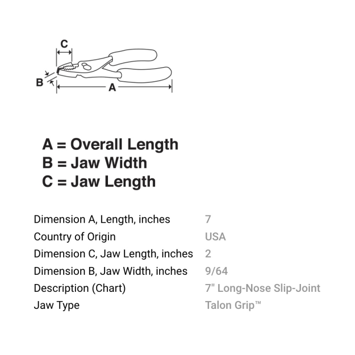• Talon Grip™ 專利設計透過重新定位關節位置、優化手柄形狀以及鑽石型紋路鋸齒鉗口,使夾持力提升 57%