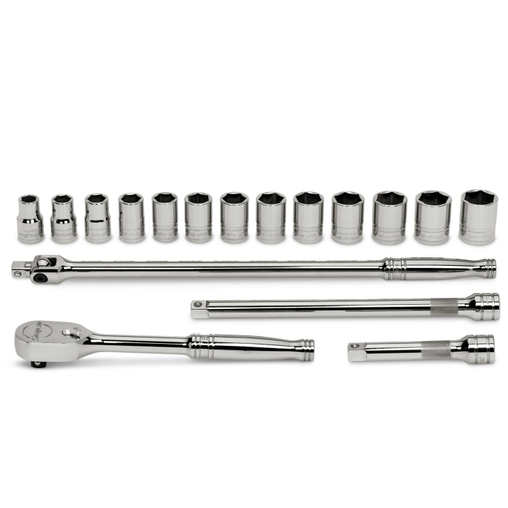 • 美國原裝進口 • 17 件式:含 (13) 個公制套筒 (12 – 24 mm)、 (1) 18" 扳桿、(1) 5" 接桿、(1) 11" 接桿、(1) 4 分標準柄棘輪扳手 • 採用特殊合金鋼製造,經過精密鍛造與熱處理,打造出最佳的強度與耐用度 • 鎳鉻電鍍塗層有助於防鏽抗腐蝕,且表面光滑、易於擦拭清潔 • 全密封棘輪頭,徹底鎖住內部潤滑油脂,並阻絕灰塵汙垢進入,大幅延長工具使用壽命