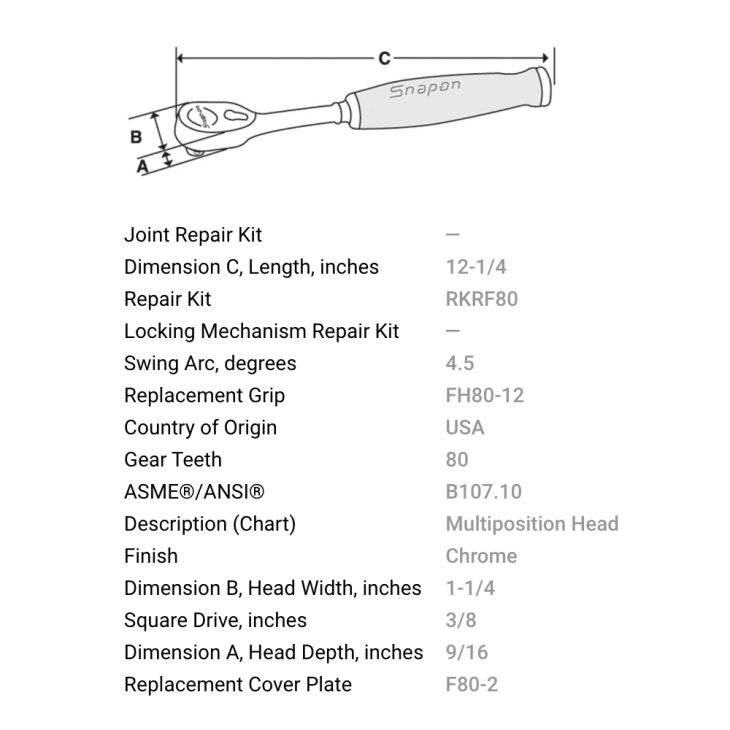 | Description (Chart) | Multi-Position Head Ratchet | |