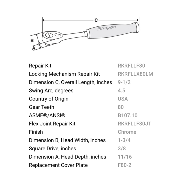 • 採用 Dual 80® 專利 80 齒棘輪技術,7 齒同時受力咬合,更平均分散力量,提供卓越強度與耐用度